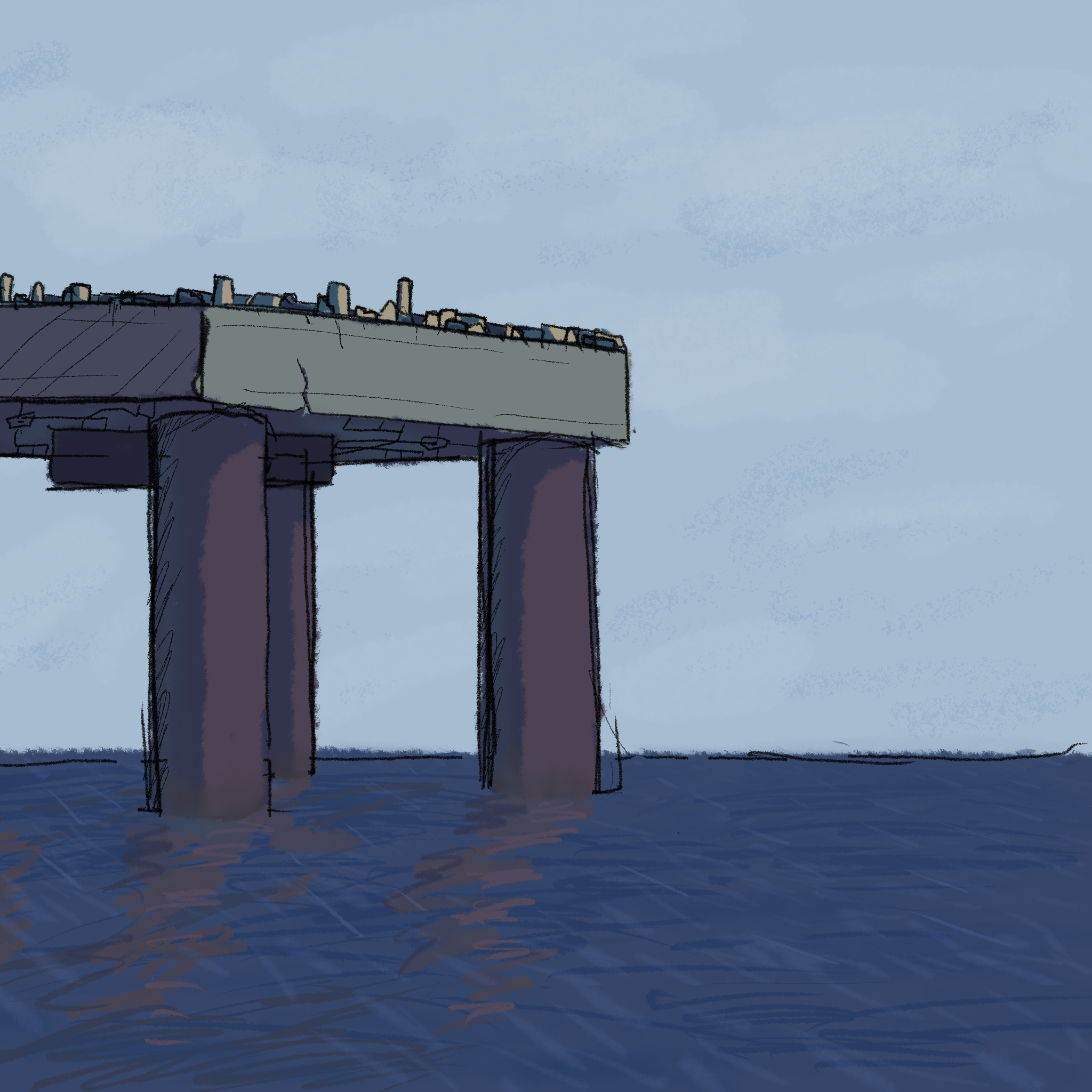 This is a depection of a theoretical country I could create if I were a billionare I drew it suspended from the sea with inspiration from Sealand The ocean I drew is ugly but I'm better at drawing now trust